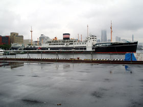その向こうには、ランドマークタワー。上層階には雨雲がかかって見えなくなっていました。