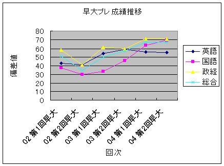 Excel使って成績の推移とか作ってみました。 現役・1浪のころはバラバラに模試受けてたり、サボってたりしたからグラフにできず。 とりあえず偏差値だけで作ってみますた。 偏差値(折れ線)と点数(棒グラフ)にするほうがいいんかしら。 特にコメントなし。英語はいつまでたっても偏差値60いきませんでしたね(ノ∀`)アチャー あと、早大プレの国語の差に笑えます'`,、'`,、'`,、'`,、(ノ∀`)'`,、'`,、'`,、'`,、 マーク模試のグラフとか見て思うんだけど成 績 伸 び て な い よ _| ̄|○ ほぼ横ばいじゃないか('A`) ![]() ![]() ![]() |